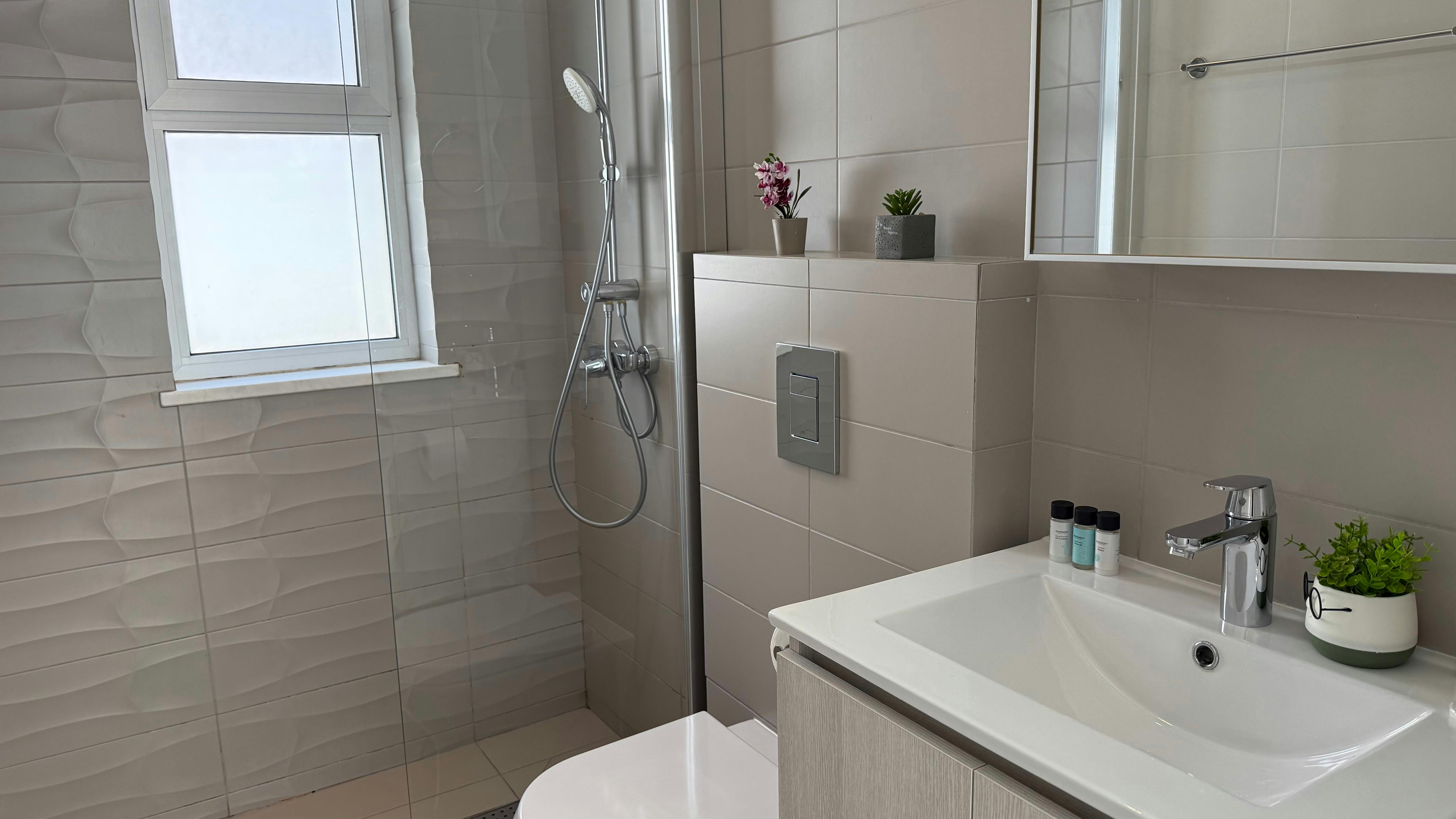 Hair Dryer, Toilet, Bath with shower, Bathroom, Shower, Towels