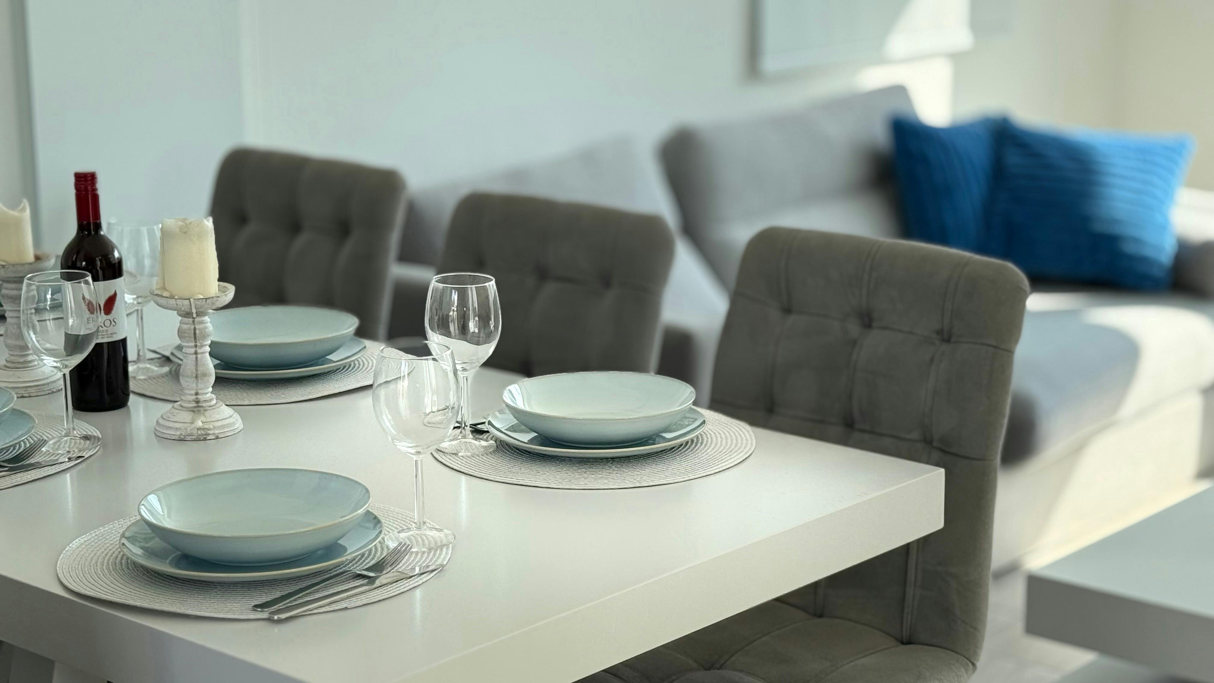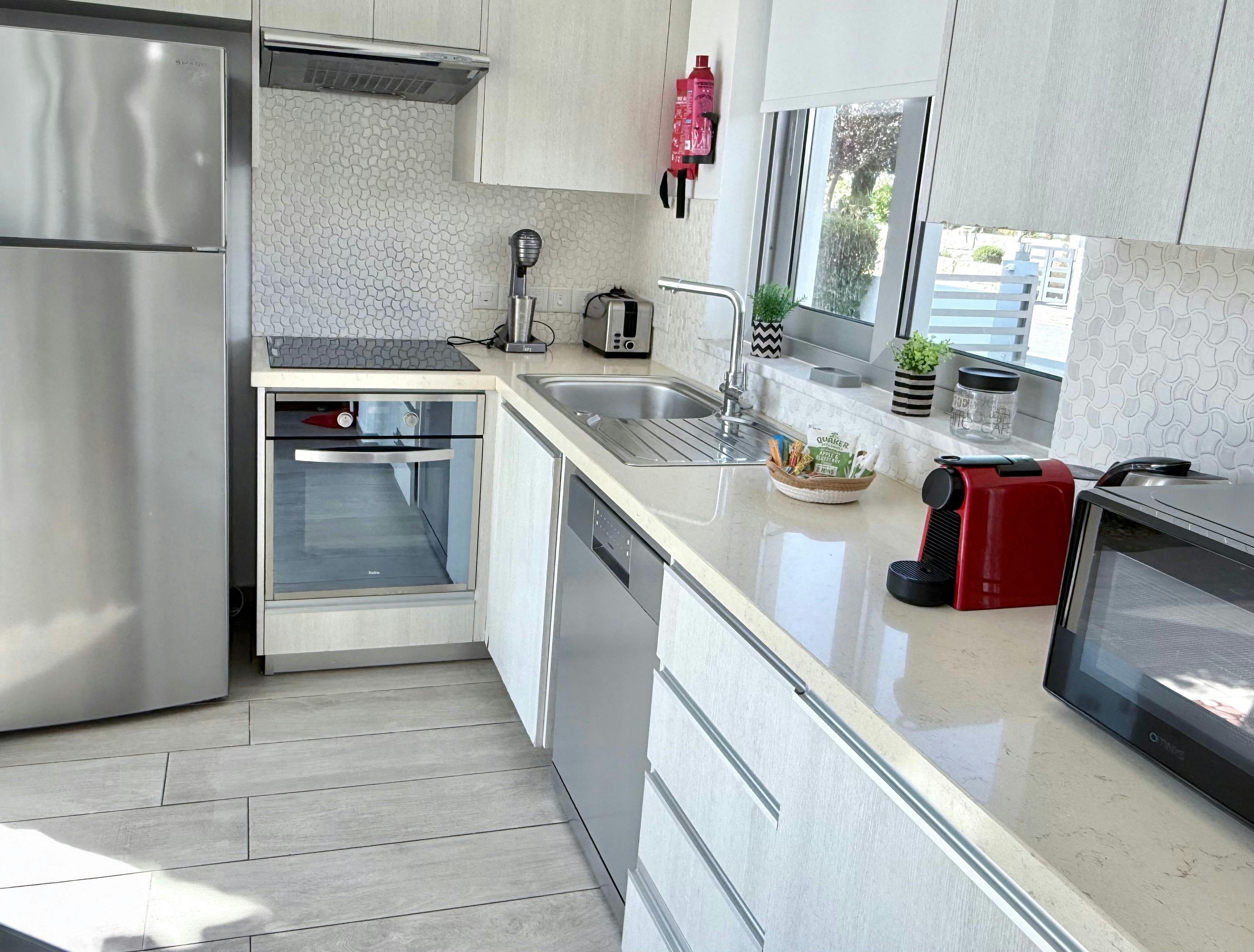 Inside, you’ll find a bright, open-plan living and dining area designed for relaxation and socializing. The fully equipped kitchen makes home-cooked meals a breeze, offering everything you need: a coffee machine, toaster, microwave, oven, hob, all you need for preparing snacks or family dinners. Enjoy meals indoors or step outside to the beautiful terrace for breakfast or dinner.