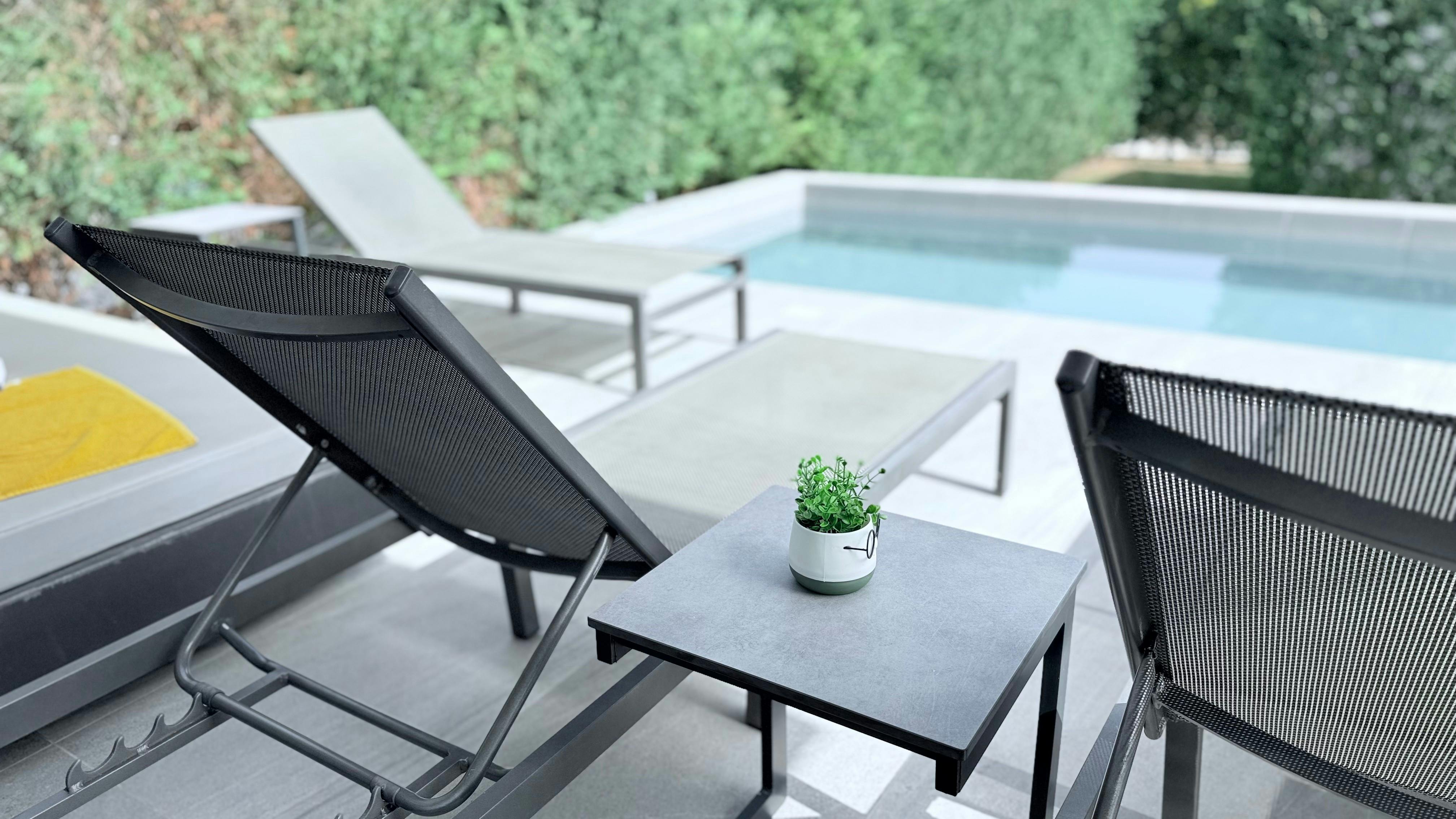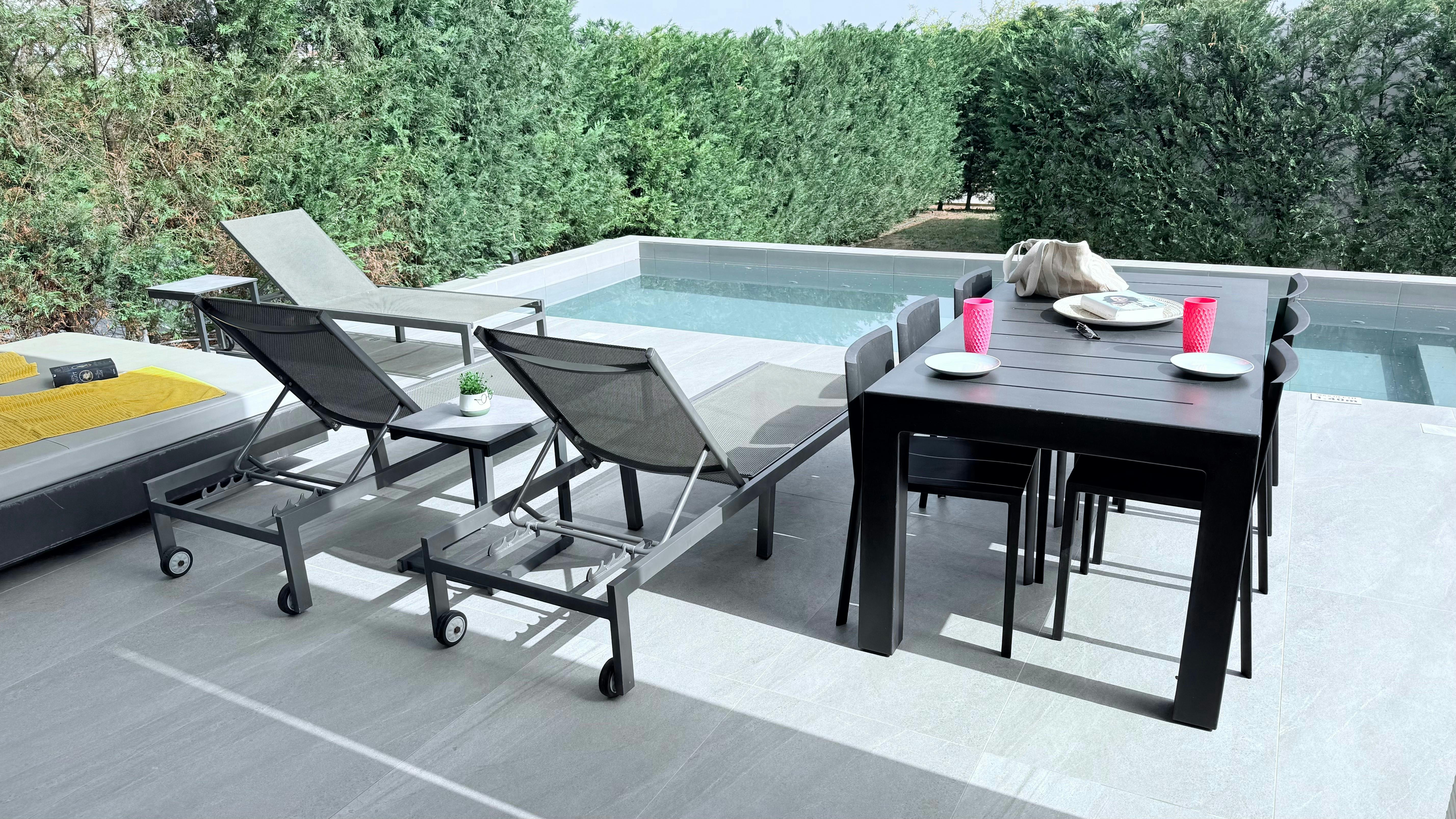 The outdoor space at Azure Seaview is perfect for both relaxation and entertainment. Dive into your private pool, lounge on the sunbeds, or fire up the BBQ grill for a delightful cookout with loved ones. Comfortable outdoor furniture surrounds the pool area, providing plenty of space to unwind and soak up the Mediterranean sun. For those who enjoy a bit of elevation, the roof terrace offers stunning views and a perfect spot to watch picturesque sunsets.