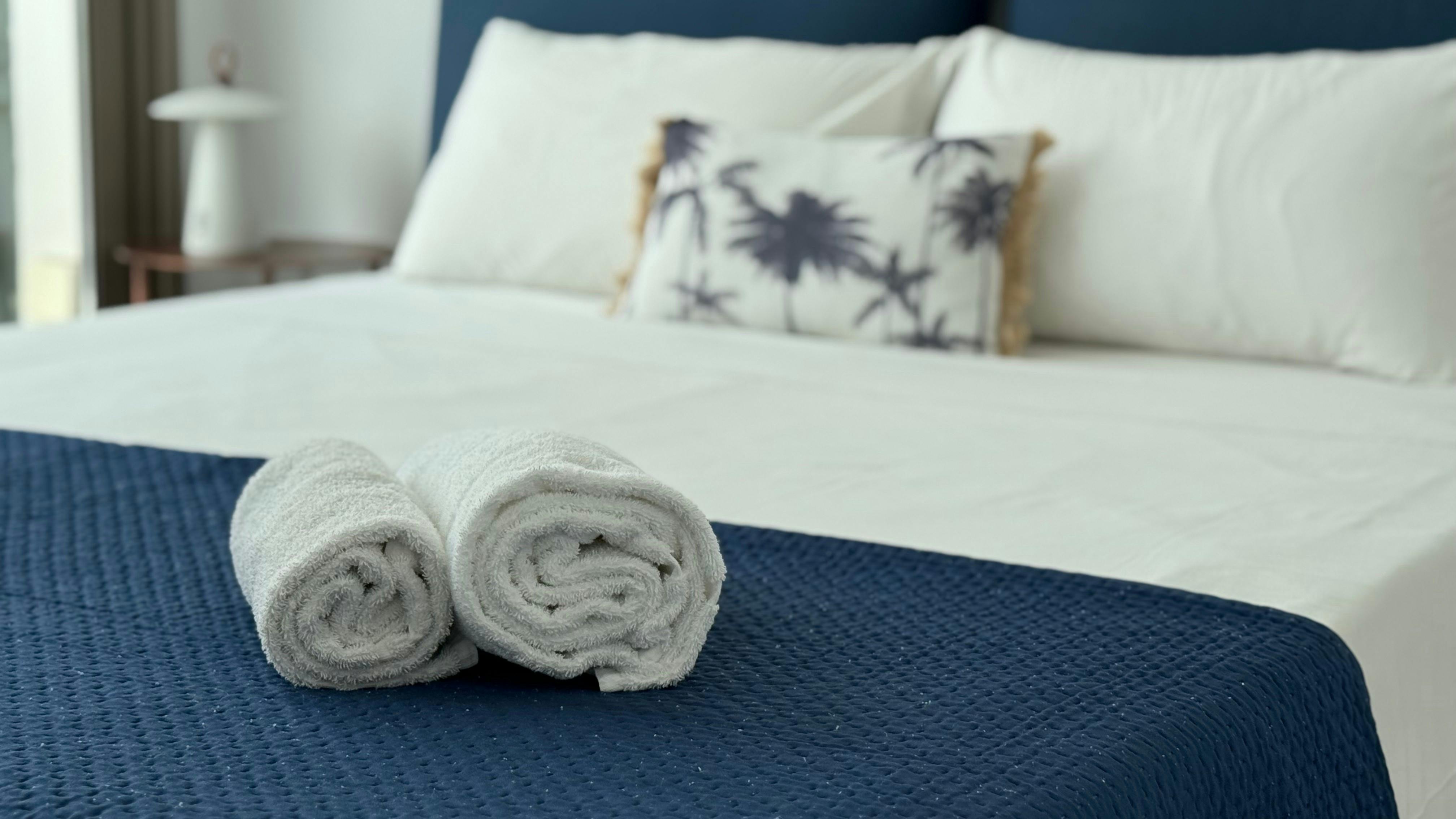 Upstairs, Azure Seaview boasts three thoughtfully designed bedrooms. The master suite is a standout feature, complete with an ensuite bathroom and a spacious walk-in closet, offering a private sanctuary for rest and relaxation. The second bedroom is outfitted with twin beds, while the third bedroom offers a single bed and a double sofa bed, making it perfect for additional family members or friends. Additionally, there is a dedicated family bedroom on the first floor, designed to accommodate the needs of a larger family with comfort and style. Each room is equipped with ample storage and blackout curtains, ensuring a peaceful night's sleep. Step out onto your balcony from any bedroom and take in the serene views of the pool below.