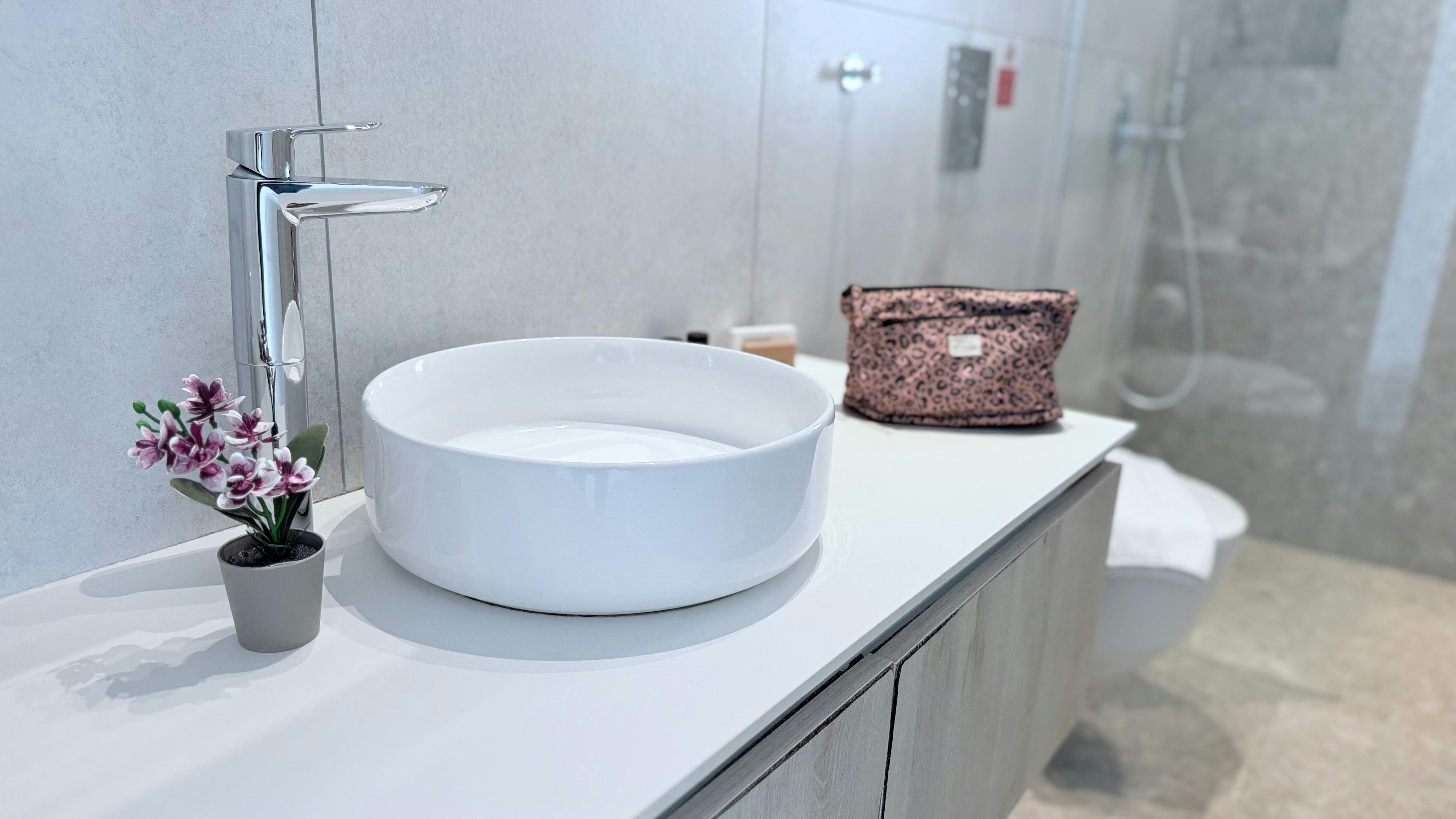 One of the highlights of Azure Seaview is the spacious roof terrace, where you can unwind with stunning sea views and enjoy the gentle Mediterranean breeze. Cozy outdoor furniture invites you to relax with a book or share a quiet evening under the stars. The roof terrace also features another guest toilet, adding to the villa’s convenience and functionality.